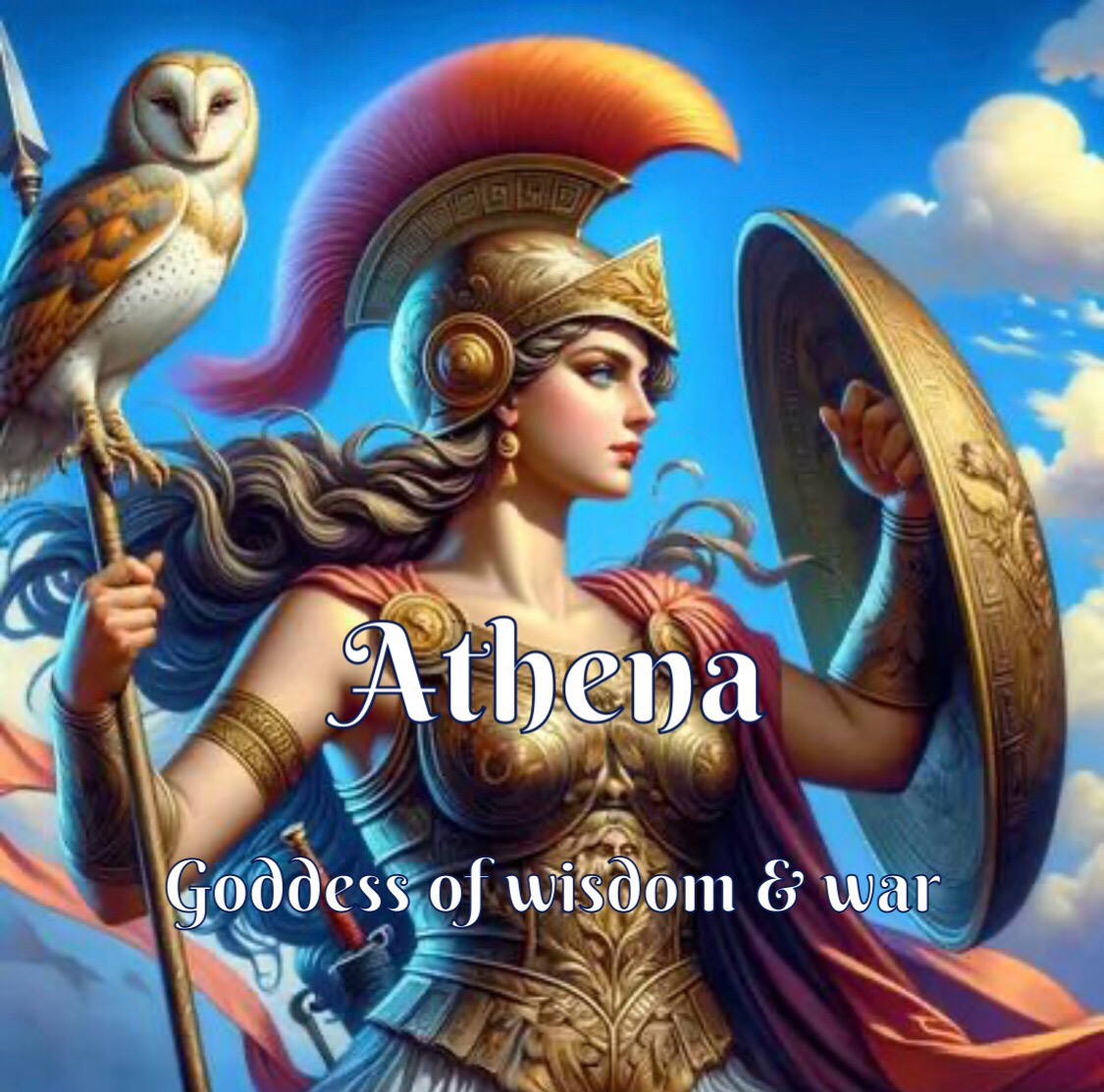 | Renee | Athena |  | Goddess of Wisdom and War...as well as handicraft, courage, inspiration, civilization, law and justice, strategic warfare, mathematics, strength, strategy, the arts, and skill. (Woa!!! Does this Type A Goddess ever sleep?) Athena has most recently appeared cruising the world with senior citizens and exploring Greece with her family. |